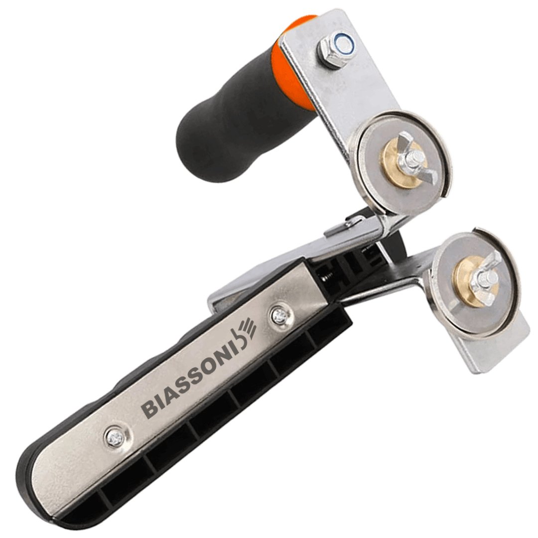 Las dos hojas de corte circulares permiten cortar el material de ambos lados al mismo tiempo.